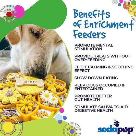 Sodapup Mandala Yellow eTray Slow Feeder Tray Made in USA from Non-Toxic, Pet-Safe, Food Safe Material for Mental Stimulation, Calming, Avoiding Overfeeding, Slow Eating, Healthy Digestion