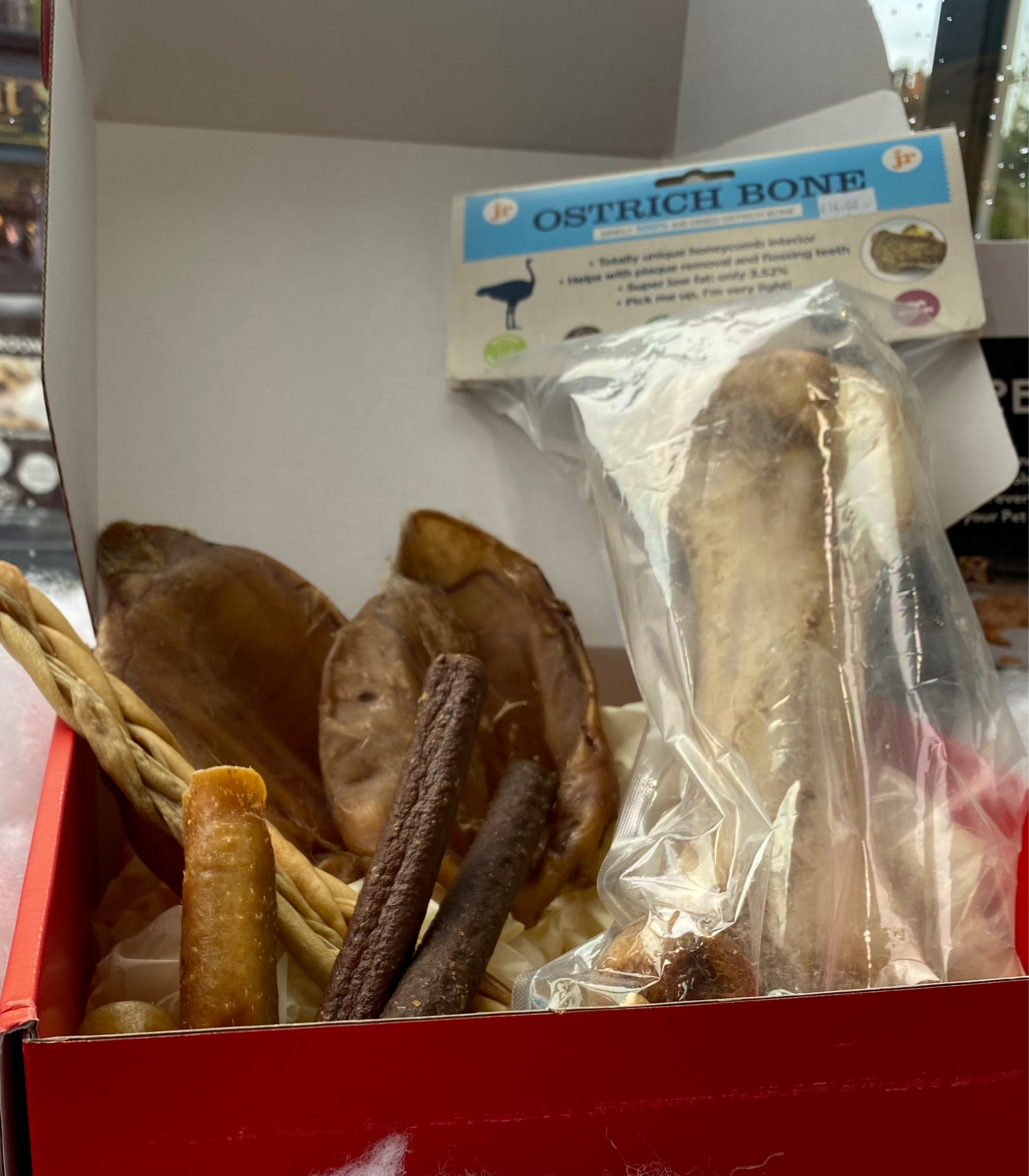 The HGPets Natural Gift Box 10 is the paw-fect present for four-legged friends.. This gift box contains natural treats that are deliciously nutritious, so they won't just be yummy, they'll be good for them too! Boxes made up to £10 may vary. message us for content details