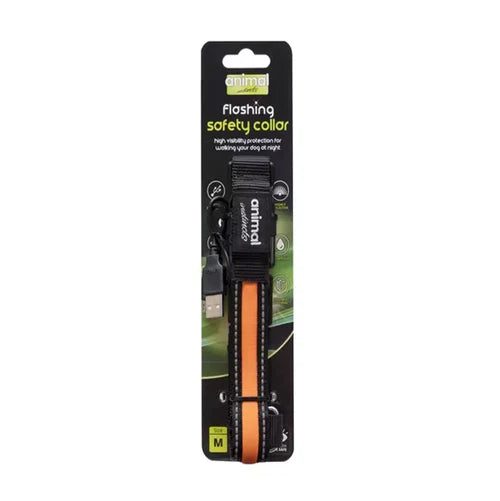 Animal Instincts Flashing Safety Collar Orange Large 45-63cm