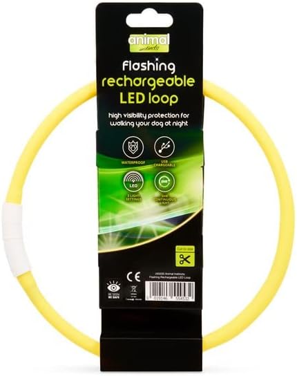 The Animal Instincts Flashing Rechargeable LED Loop is a great way to keep your dog safe when walking in the dark. It can be cut to any size to fit various dog breeds.