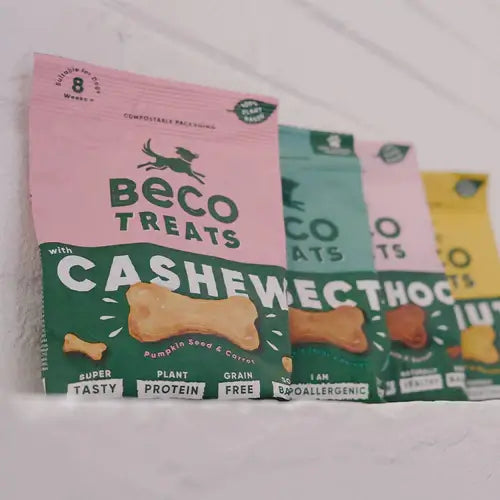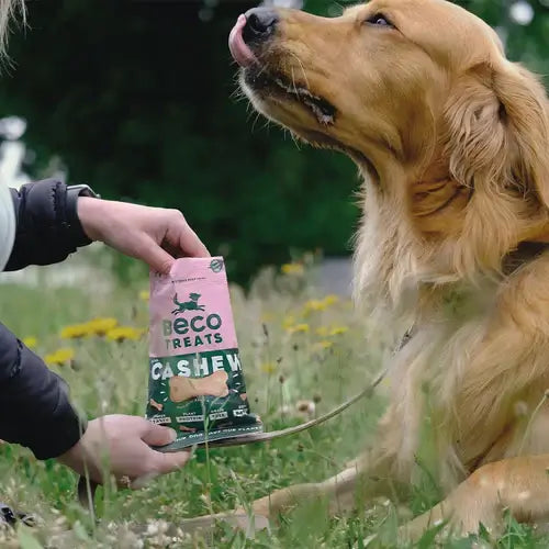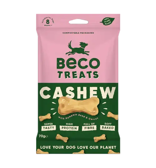 When you combine buttery cashews together with pumpkin seeds and carrots, you get an irresistible treat for a very “good dog” that goes hand-in-hand with a pat on the head. Each individual biscuit is soft-baked in an oven powered by renewable energy. Packed with plant-based protein and tail-waggingly tasty ingredients. There is no doubt that they’ll be wooing you with tricks for more. Pocket-sized and compostable packaging approved, ready to grab-and-go.