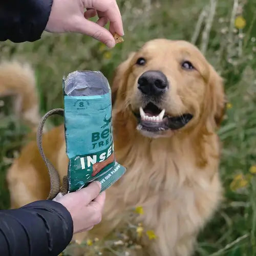 Tried and tested grub by our canine colleagues, these biscuits passed with flying colours. Insects are hypoallergenic with a low carbon footprint when compared to other sources of meat protein. What’s more, they’re a source of digestible protein that dogs love to snuffle up, nature at its best. We’ve added a few extra ingredients; apple, chai seeds and parsley to make these treats even more irresistible. Pocket-sized and compostable packaging approved, ready to grab-and-go.
