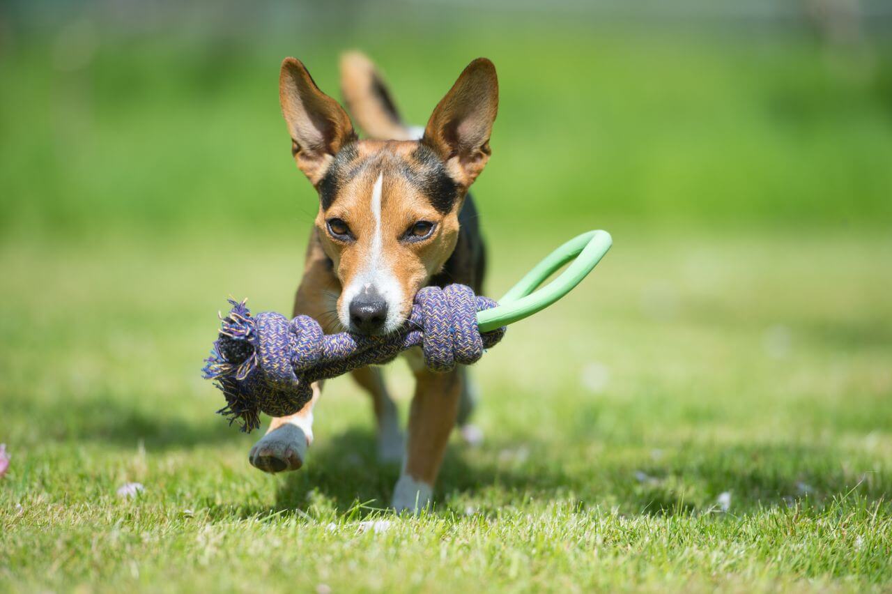 Ready. Set. Go. Let tug-o-war begin. The springy natural rubber hoop softens the blow as your dog pulls on one end. The soft recycled cotton rope, fastened with chunky knots, gives you a good grip on the other. Let’s see what you’ve got.