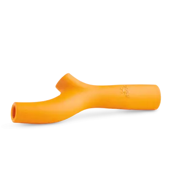A tough chew toy that’s ready for adventures. The natural rubber makes this toy springy and satisfying to chew without the risk of woody splinters. You can fill the hollow ends with nut butter or paste to make a great enrichment toy at home, whilst its bright colour and ergonomic design make it perfect for fetching on walks.