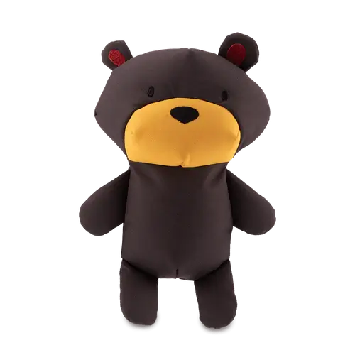 Dogs love to love and sometimes need a friend at home to relax with. Our soft and cuddly teddy toy that dogs love to curl up with, and sometimes wrestle. This toy has double-stitched seams and a squeaker to help keep them entertained. This toy is made from recycled plastic cloth and stuffing to help keep our wild places clean.