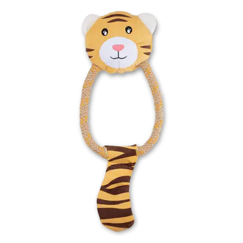 Made with recycled materials and a hemp and cotton rope. Whatever the occasion, this toy is here to help. The soft cloth and stuffing make it extra cuddly and the ring design give your dog a good grip during tug of war. Double-stitched seams help improve its strength and durability. The recycled content in this toy gives waste plastic and cotton a second life.