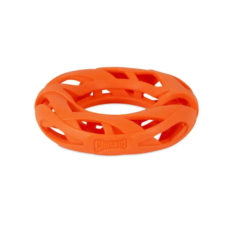 The Chuckit! Fetch Wheel is an innovative toy that bounces and floats, but also rolls on the ground so the dog can chase it and fetch it back.