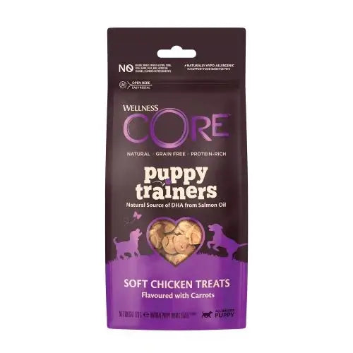 - FRESH MEAT AS MAIN INGREDIENT: Our Wellness CORE Puppy Trainers contain fresh chicken as the main ingredient. These treats are also naturally hypoallergenic, making them perfect for every puppy. A healthy treat after a good training session!