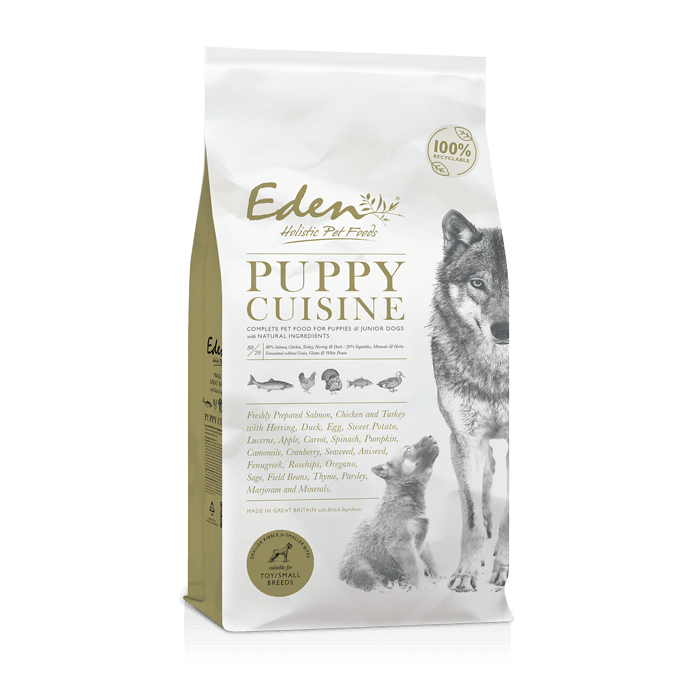 Puppy Cuisine is packed full of high protein ingredients such as succulent Scottish salmon, juicy chicken, tempting turkey, flavourful herring and delectable duck. Eden’s Puppy Cuisine is a complete food, meaning that it provides your puppy with all the nutrients they need to fully optimise their whole health. Our grain-free, naturally hypoallergenic puppy food combines our classic all-natural ingredients and our renowned high-quality, high meat content. Because we don't use any fillers, your puppy will be able to absorb all the key nutrients from our ingredients producing smaller, firmer stools.