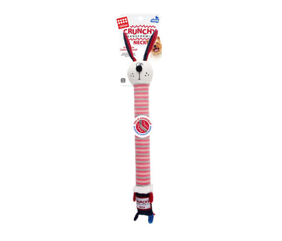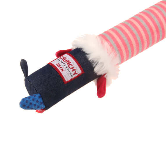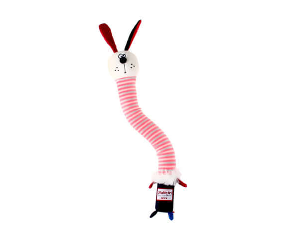 The Crunchy Transforming Neck Series has been specifically designed with a fun crunchy mechanism that can bend, rotate and be chomped on without losing its shape! It is protected by a special foam material underneath the outer plush, which hides a squeaker, adding to the fun. Dogs love the sounds this toy makes, bringing hours of entertainment by honing in on their natural hunting instincts. Rotate or break it in any way possible; our ultra-bendy toys will take on any shape they can.