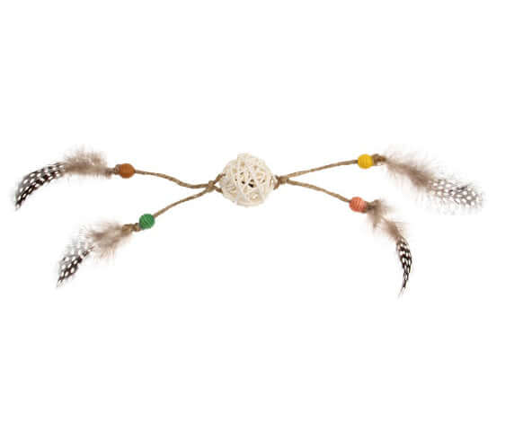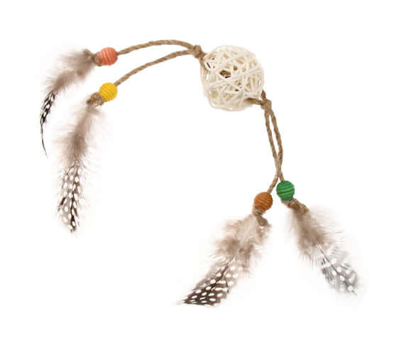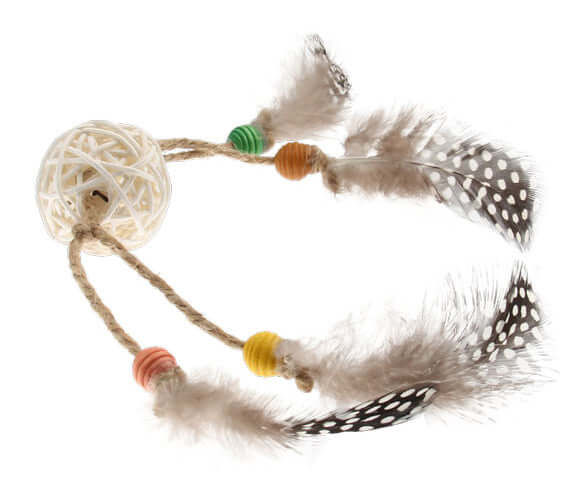 - The Eco range is made with natural feathers, wood and rattan and contains a rattle to attract a cat’s attention.