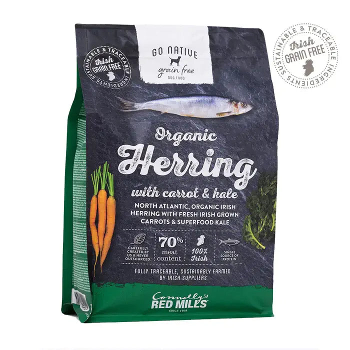 Go Native Organic Herring with Carrot & Kale is made with 70% delicious Wild Atlantic herring, this grain-free, hypoallergenic recipe is blended with natural carrot & kale, and is bursting with antioxidants, all of which are designed to support your dog’s immune system, while prebiotics from seaweed help promote a healthy tummy.