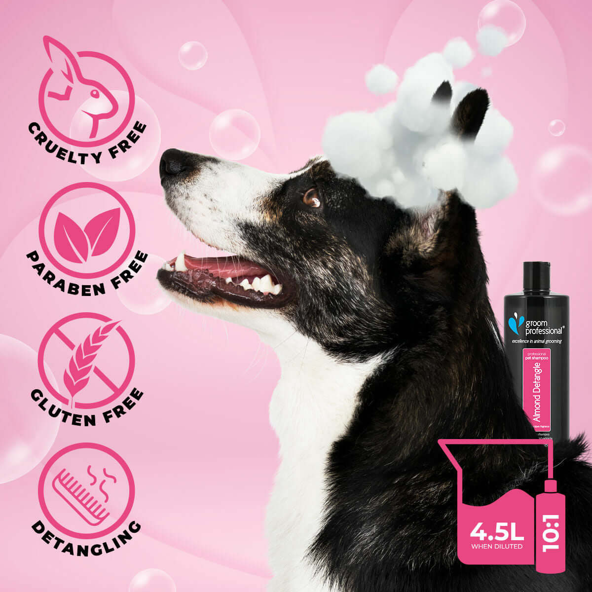 This shampoo is packed with ingredients to clean the coat and the addition of Almond Oil helps to deodorise along with its many other benefits. Leaves the coat fresh, clean and free from debris all while detangling and helping to get rid of pesky matts.
