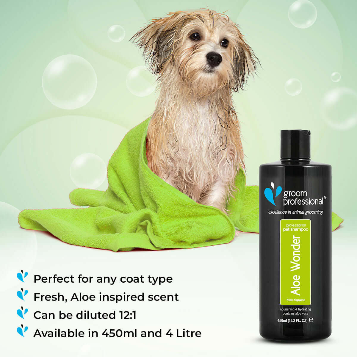 Want the best of both worlds? Aloe Wonder hydrates the coat and skin as it cleans. Easy to apply and lather, this shampoo will leave the coat clean, soft and shiny while addressing any skin irritations or dryness.