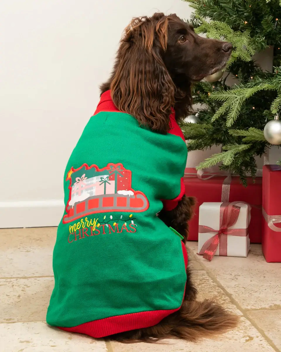 Hugo & Hudson Green Santa Sleigh Christmas Jumper M