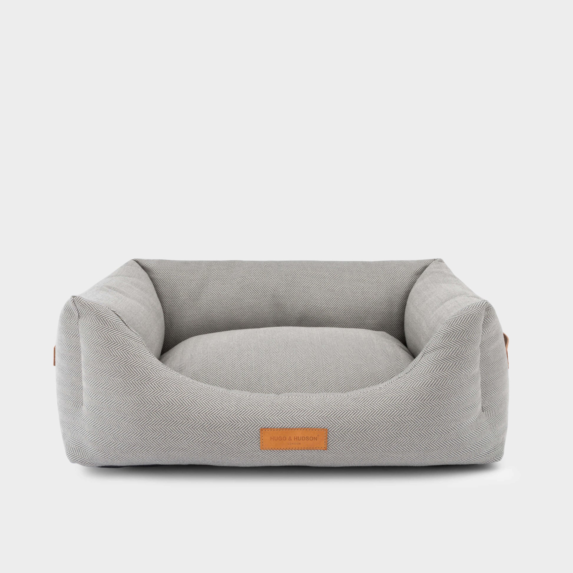 Hugo & Hudson Luxury Grey Herringbone Dog Bed L (85 x 110cm)