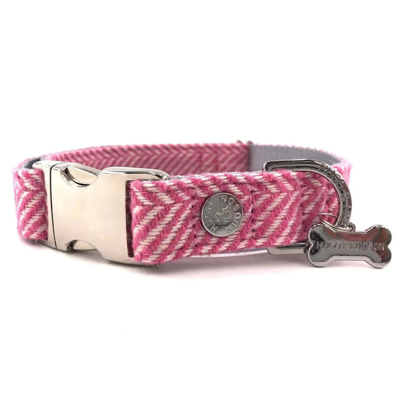 Hugo & Hudson Medium Pink Herringbone Dog Collar