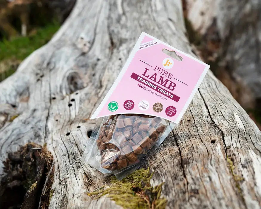 Our delicious Lamb Training Treats are made from 100% Prime cuts of Lamb Meat, No Additives, No Preservatives, Nothing! They're Grain and Gluten Free and suitable for all dogs, no matter their breed or size. These treats are Hypoallergenic too, so great for those with allergies or sensitivities. Highly palatable and easily digestible these Treats can be used for reward, training treats or for use with enrichment toys. Plus, being a part of our Award Winning Pure Range, these Treats are suitable for puppies from 4 weeks old. Available in these cute, resealable pouches to maintain freshness