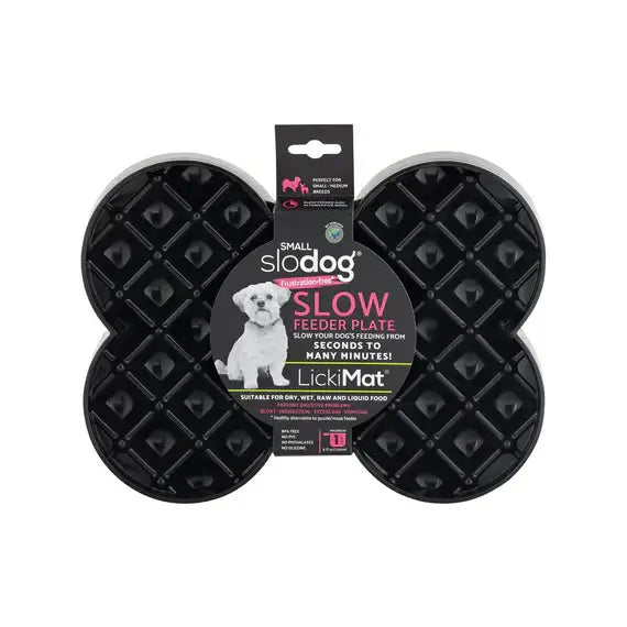 LickiMat Slodog offers a unique approach to slow feeding. As a healthy alternative to puzzle or maze feeders, the Slodog prevents gulping - slowing feeding from seconds to minutes, reducking the likelihood of digestive problems such as bloat, indigestion, excess gas or vomiting. The Slodog's small ridges holds small amounts of foods, creating mini mouthfuls for the dog to consume, slowing their feeding down. Suitable for wet/dry foods or liquids.