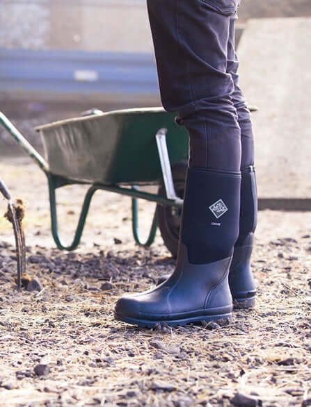 You can guarantee that our best-selling Chore collection provides the comfort and protection that a work boot needs, to handle the toughest of jobs. The Chore Classic is a reliable wellington boot with its rugged and dependable design. These work boots feature a rubber overlay and quick cleaning sole, allowing you more time to get on with the important stuff. With a comfortable neoprene top-line, this work boot stretches for the perfect fit around wide calves. The upper is reinforced in both the toe and heel area, plus additional arch support giving you the protection you need. The 5mm neoprene makes these boots lightweight and flexible, with breathable air mesh lining to keep you cool on warmer days.