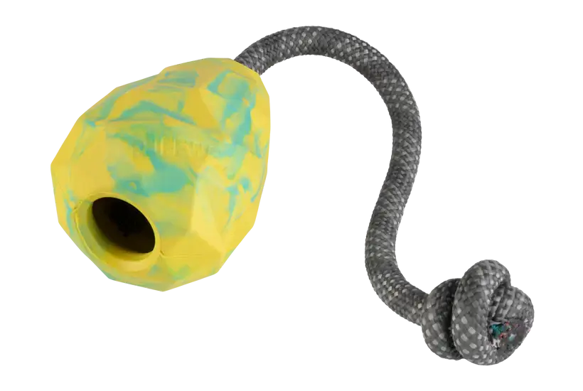 Tug, throw, fetch, repeat: The Huck-a-Cone was inspired by rewarding play between avalanche dogs and handlers during training. We took our popular Gnawt-a-Cone™ and added a knotted rope handle, providing excellent grip during training drills and rewarding play. The natural latex rubber toy is tough enough for even the most persistent canines.