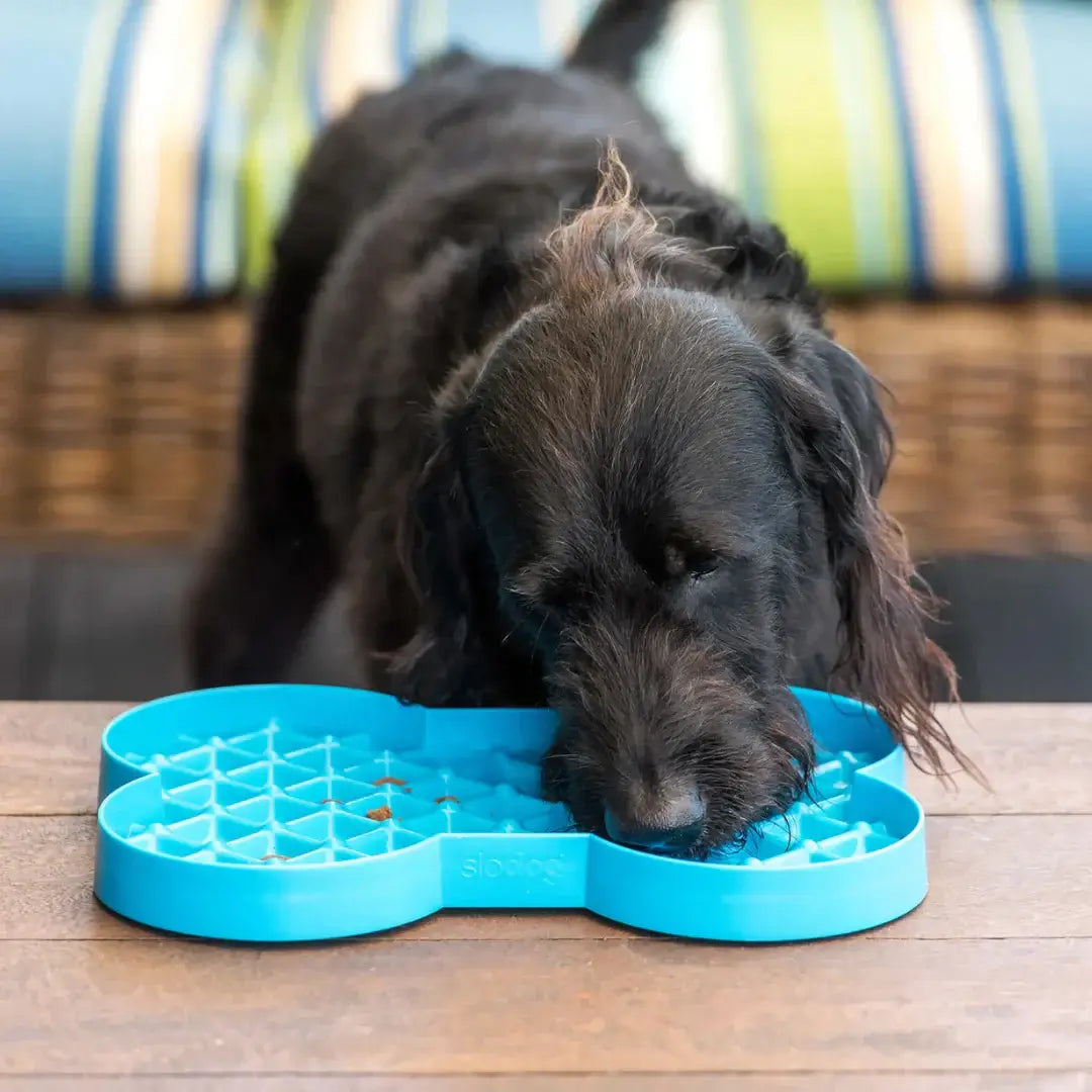 The Hyper Pet SloDog Slow Feeder™ plate is a unique approach to slow feeding and anti gulping meal time. Most slow feeders work by adding obstructions or maze like structures that make it difficult and confusing for dogs to chase and try to access their food, causing stress and anxiety. SloDog provides much more surface area accessibility for slower feeding, enabling your dog to see and access food easily. Food does not have to be chased, avoiding unnecessary frustration. SloDog is designed to split your pets’ meal into multiple mini meals by spreading the measure over lots of small shallow pockets, preventing gulping and extending feeding time.