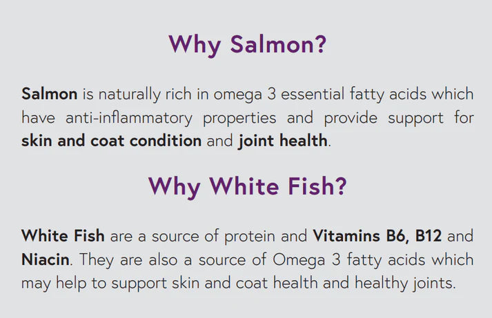 - 70% total salmon & white fish: rich in essential amino acids, vitamins & minerals to promote every day health and well-being.