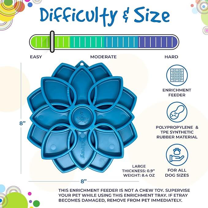 - FUN ENRICHMENT FEEDER – Give your dog a peaceful belly with this durable Mandala eTray that combines the benefits of a lick mat & slow feeder to promote healthy, slower eating. It works for all dog sizes, including puppies. Size 8" x 8”.