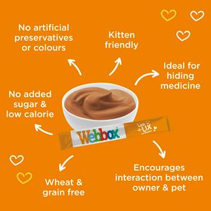 A totally unique and tasty treat for your purry partner. Made with a soft yoghurt-like texture, Webbox Lick-e-Lix with Salmon and Omega.