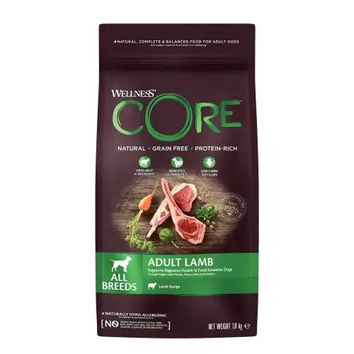 Wellness Core Lamb Dry Dog Food is designed to meet the needs of dogs who have sensitive digestive systems.