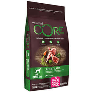 Wellness Core All Breed Adult Lamb is tailored to support adult dogs' nutritional needs, for general digestive health and food sensitive dogs, with lamb as the only animal protein. Grain free and protein rich with fresh lamb as the first ingredient plus a unique blend of wholesome vegetables and superfoods, leaving out fillers and grains.