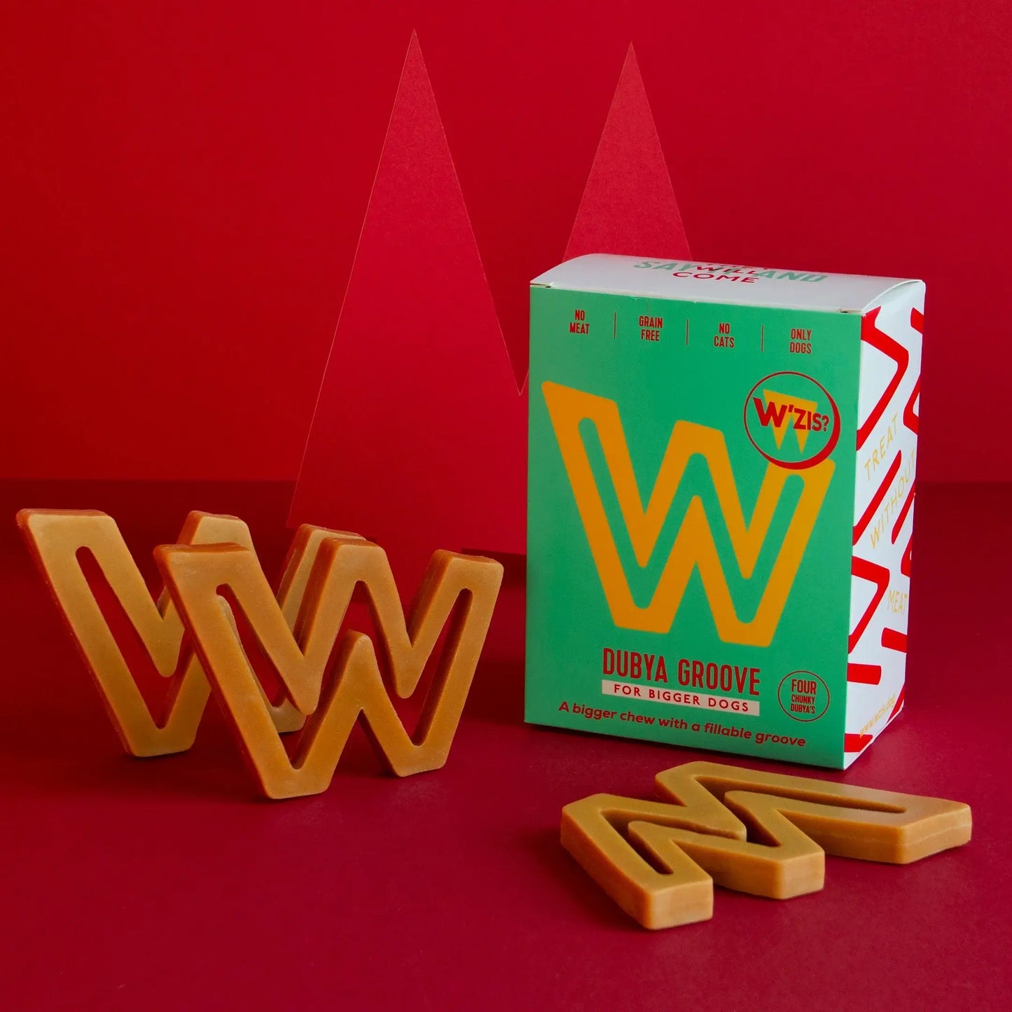 What’s a W’ZIS Dubya Groove? Well, it’s a ‘W’ shaped chew, and it has a groove in it – no poop Sherlock. The Groove’s primary function is to aid your pooch’s ability to pick it up. The second is an aperture for carrying an additional treat. Load it up with dog-friendly cream cheese or peanut butter, and your friend for life is about to submit a request to The Palace regarding your long-overdue knighthood.